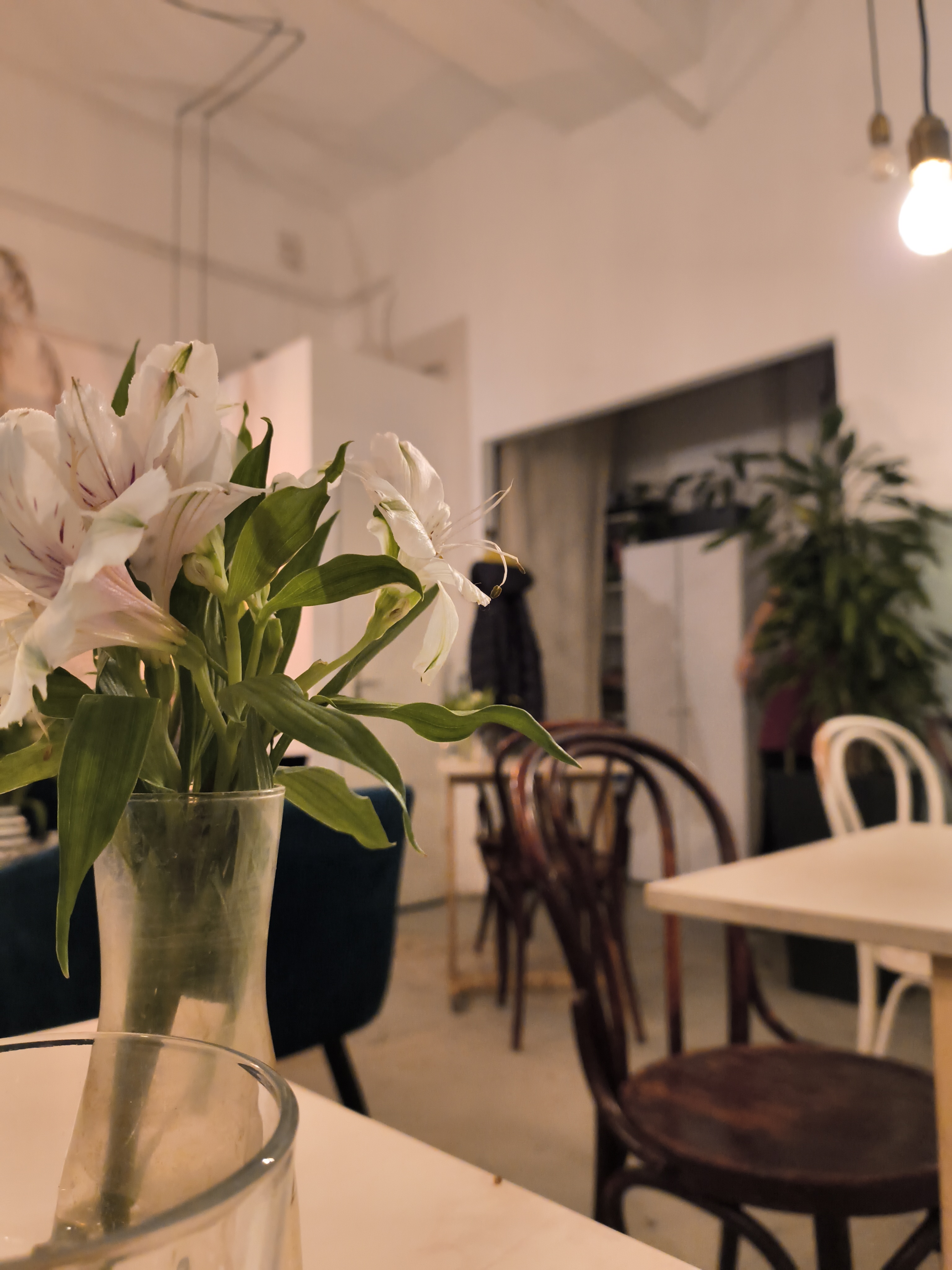 Sitting in a corner by the window, I found a small table where I could open my laptop and immerse myself in my work, but at the same time I felt pampered by the beauty of the place and the energy it exuded. The smell of freshly brewed coffee mixed with the sweet aroma of homemade cakes. I realised that Blaumond was more than just a café to work in, it was a place where time seemed to slow down, where every detail was designed to create a feeling of intimacy and warmth. A chance encounter that turned a simple break into a small romantic oasis in the heart of Berlin.