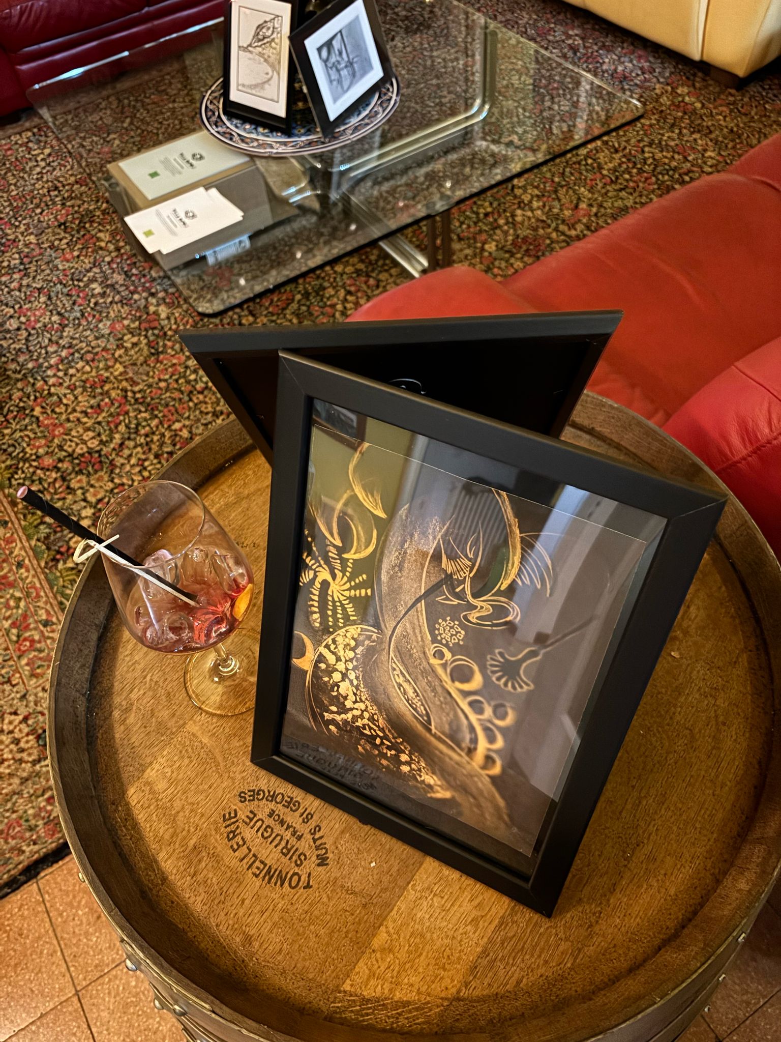 It was within this unique setting that I had the honor of exhibiting my artworks, creating what I would call a true encounter between art and vineyard. The energy of the villa, its rational yet warm architecture, and the passion that permeates every corner made this first vernissage feel like a moment suspended in time.