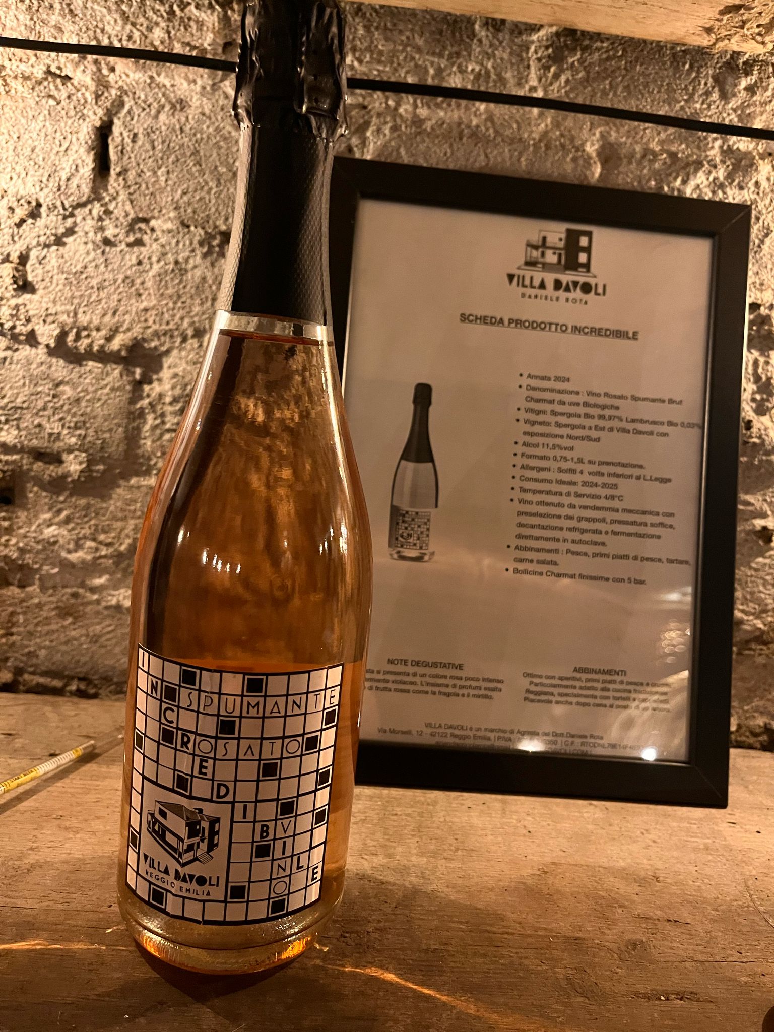 Villa Davoli is much more than just a location: it is a beautiful guesthouse with a rationalist heart, designed in 1934 by architect Giuseppe Terragni Bottoni, nestled in the peaceful greenery near Sabbione (RE). Here, oenologist Daniele Rota has chosen to create a wine production that breaks away from convention: the wines of Villa Davoli are elegant, refined, and surprising. They are the result of a personal and alternative vision, which is reflected in both the aesthetics and the spirit of the place.