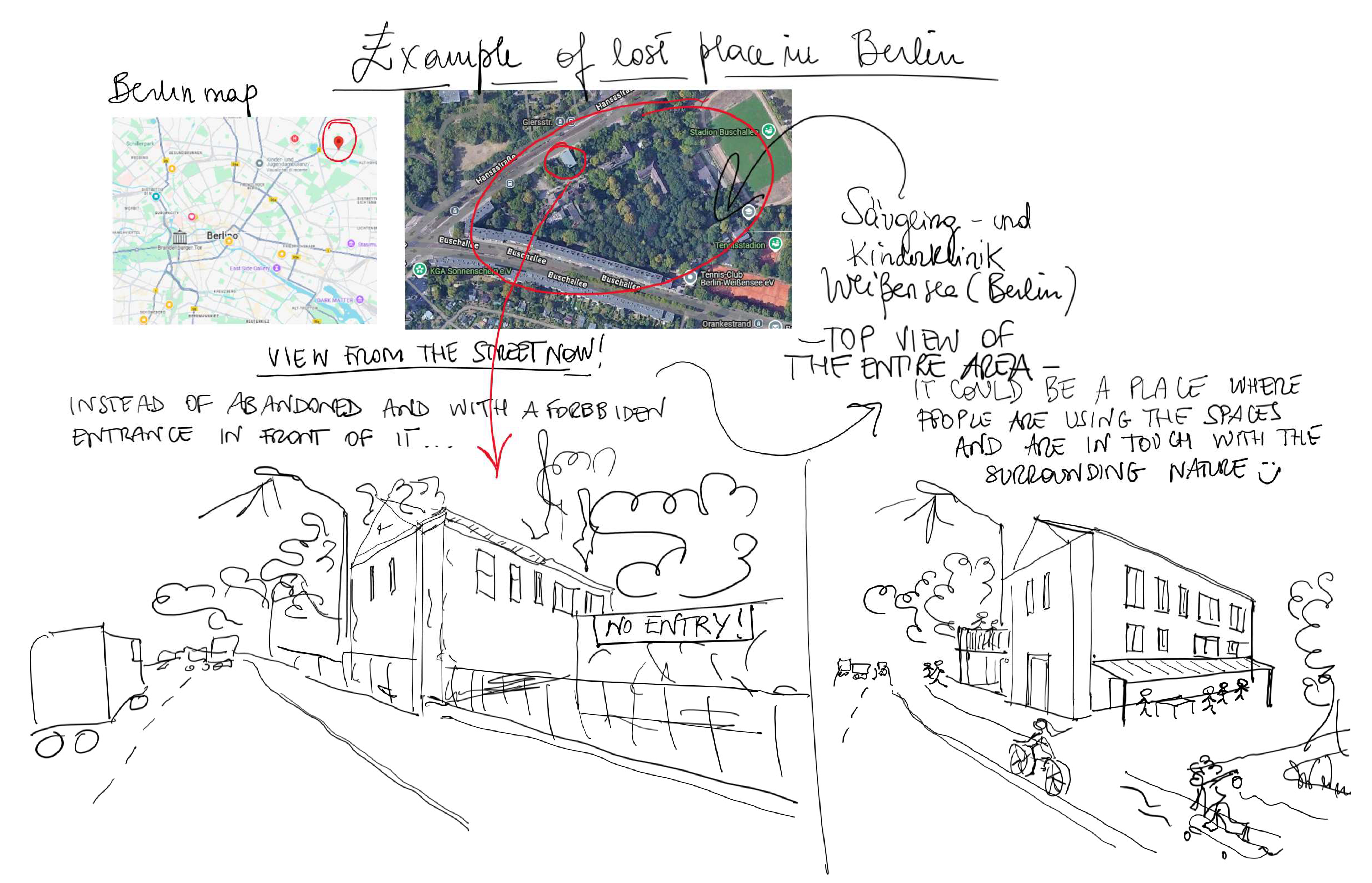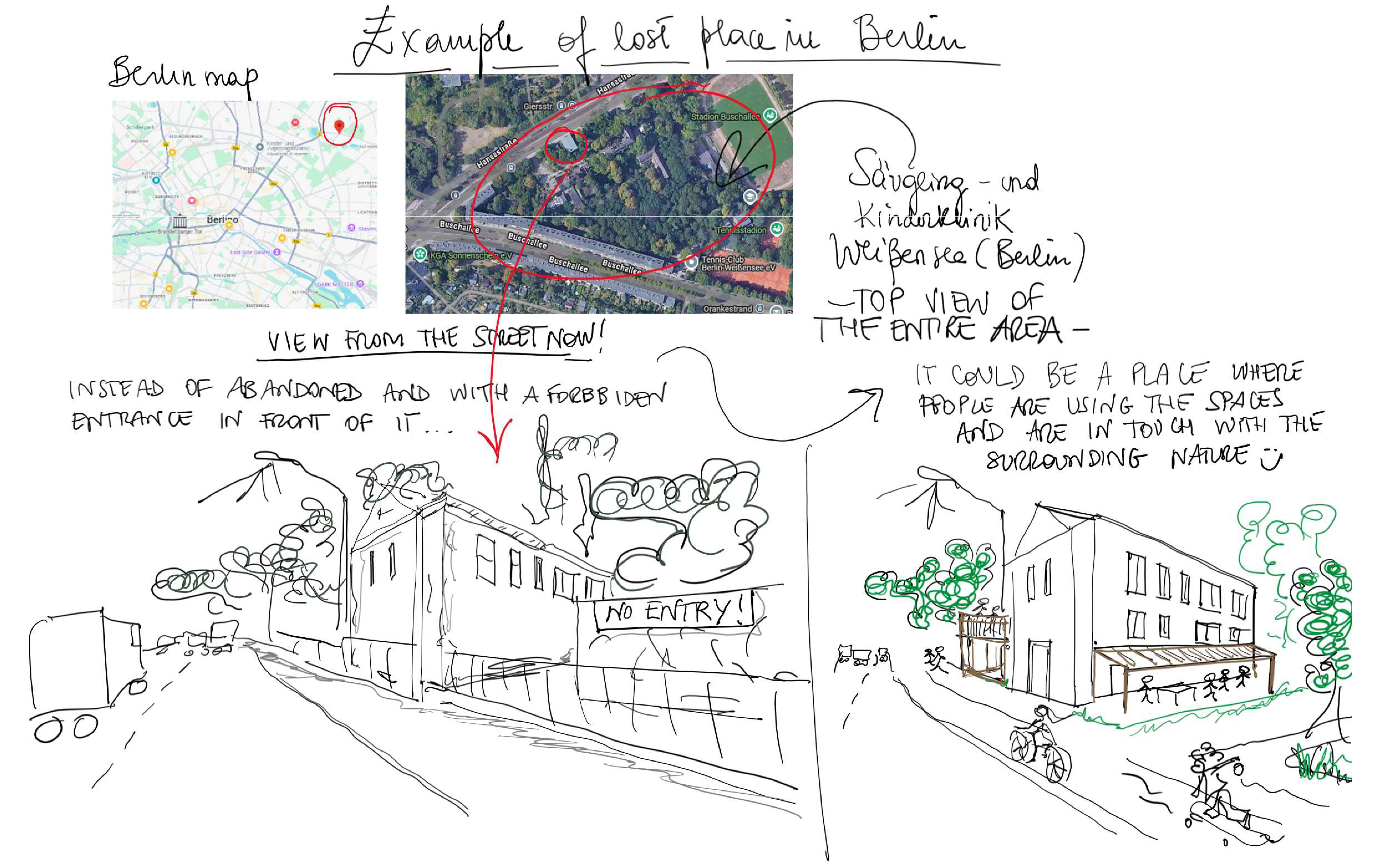 Sketch of the development project for the disused and abandoned area of … for participation in the study, integration and active participation programme at ZKU (Berlin)