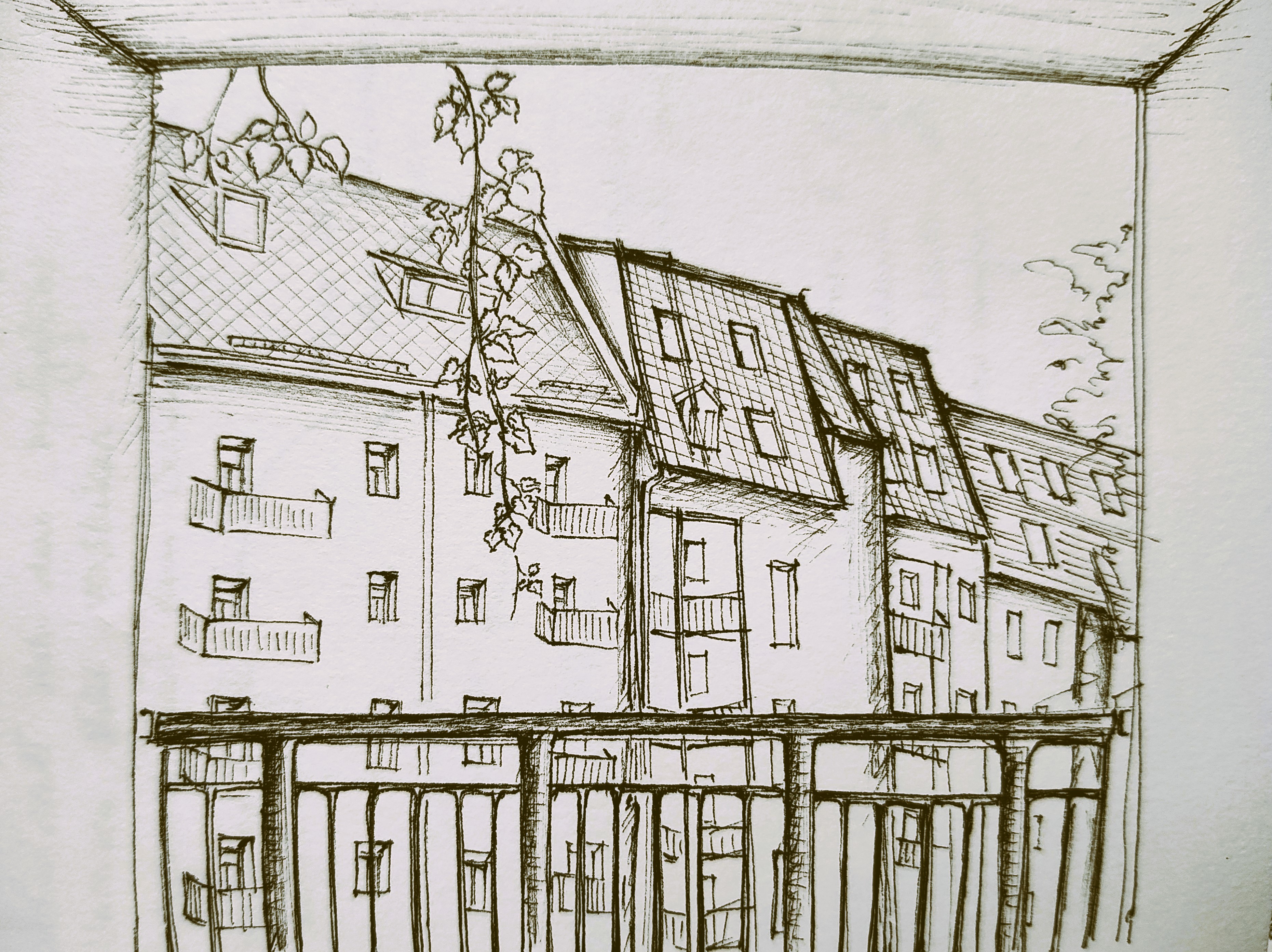 My black and white art, expressed through ink drawings, stems from a fascination with the reality that surrounds us and a desire to stop time and capture the beauty of the landscapes and spaces that inspire me. I have created three works representing significant places: a park in Leipzig, a view of an inner courtyard, also in Leipzig, and a hidden garden in Favignana, Sicily. Each drawing is a tribute to these natural and architectural settings which, through the contrast of light and dark, seem to be suspended outside of time.
