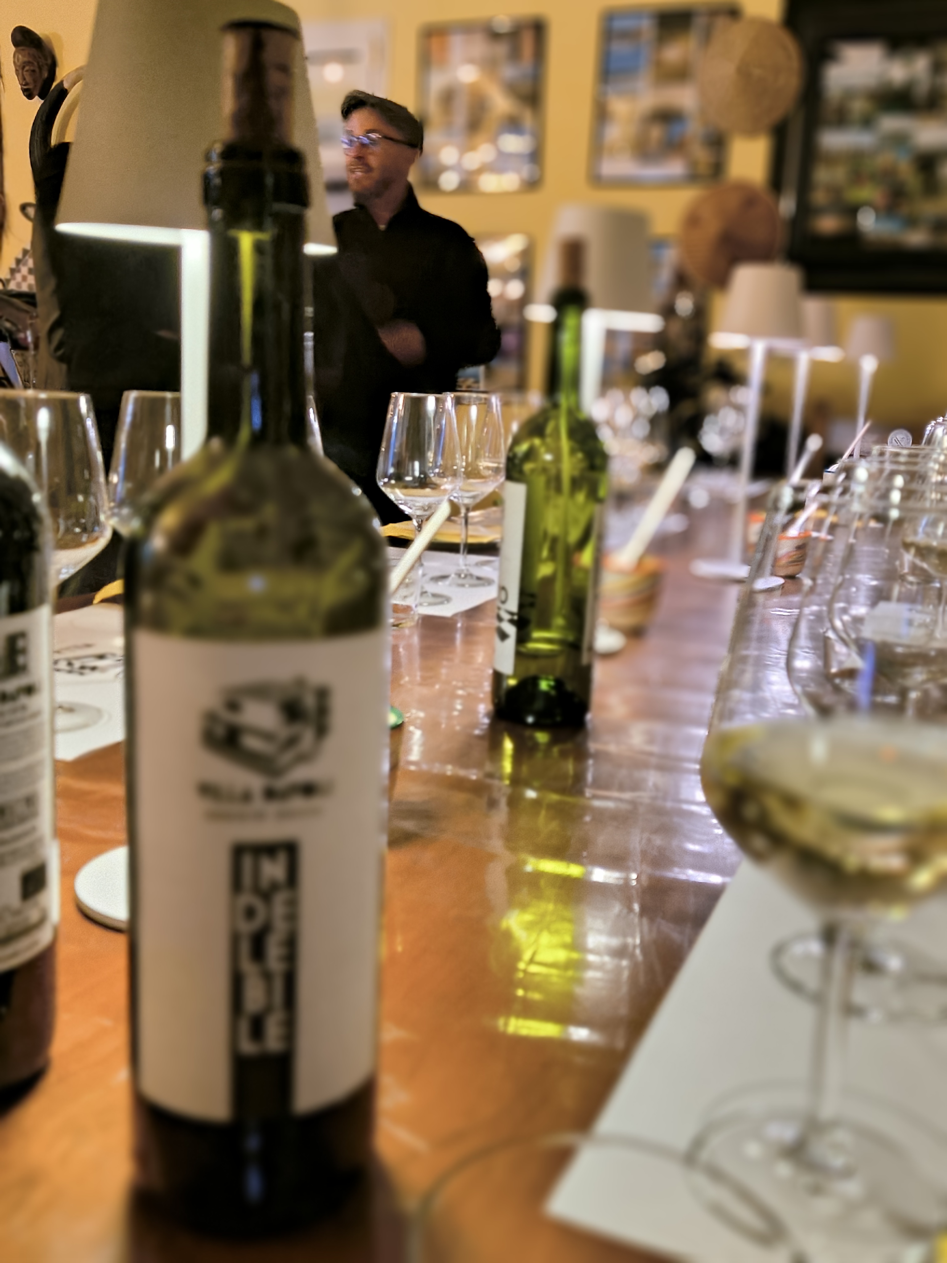 We were welcomed in an atmosphere that seemed to come from another era, surrounded by the beauty of the villa, whose rationalist style exuded a sense of understated elegance. After the tasting, we had the opportunity to visit the old wine cellar, a place steeped in history, where the wines were carefully stored in wooden barrels, almost as if each bottle told a part of the family tradition. It was fascinating to be immersed in an environment that holds so much knowledge and passion for wine, an experience that not only enriched my palate but also left an indelible impression on my heart.